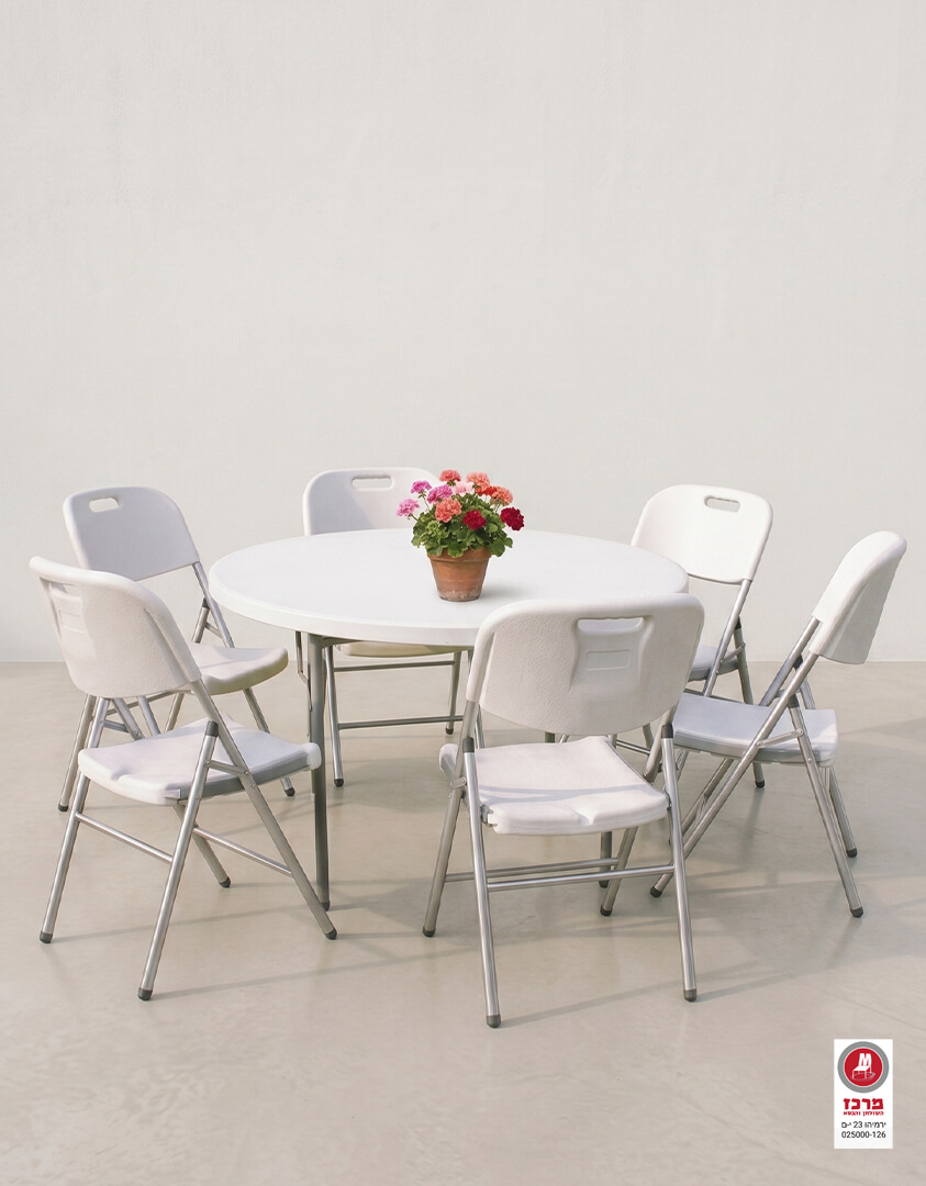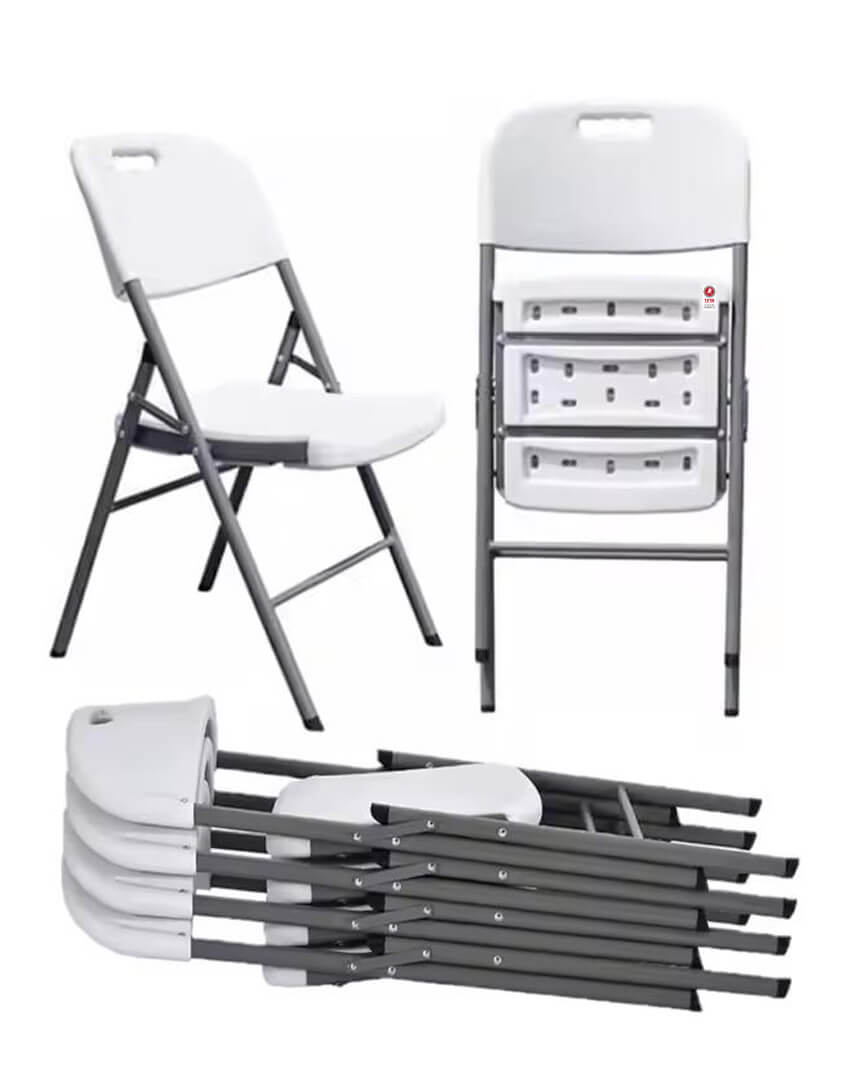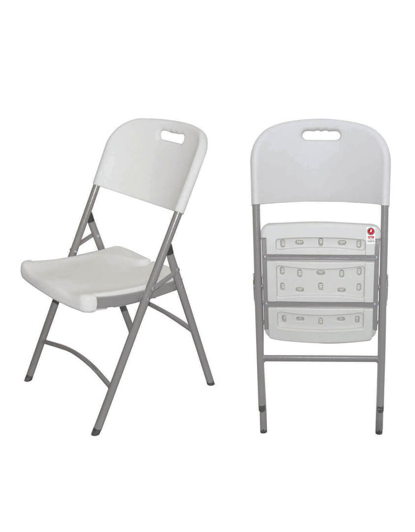 כיסא פלסטיק מתקפל חזק מאד בצבע לבן עם שלדת מתכת יציבה ועמידה. פתרון ישיבה איכותי ונוח עם ידית נשיאה שמתאים במיוחד למוסדות לשימוש פנים וחוץ. עיצוב חכם וקומפקטי המאפשר קיפול מהיר ואחסון קל וחוסך מקום.