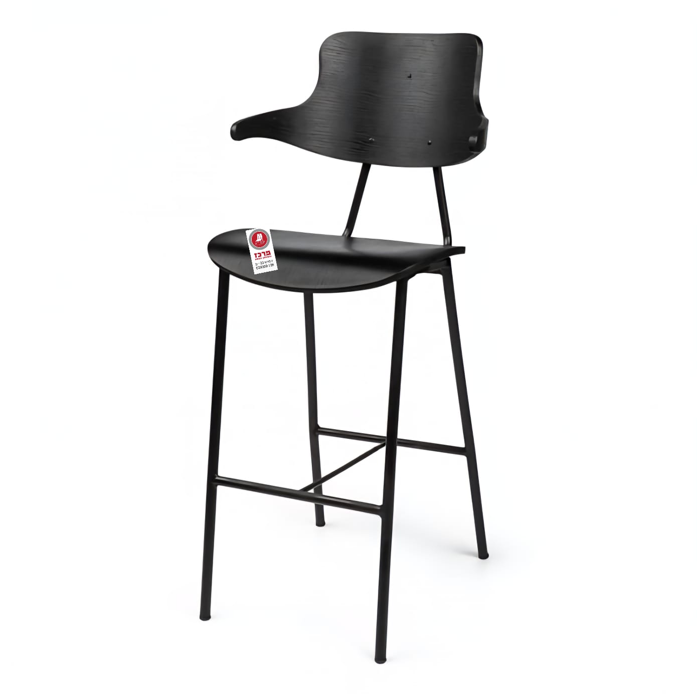 כיסא בר מעוצב בסגנון מודרני עם שילוב מתכת ועץ, המתאים למטבחים, איי ישיבה ומסעדות. השלד החזק מגיע במבחר צבעים – שחור, לבן, זהב או כסף – והמושב והגב עשויים עץ איכותי בצבע שחור או טבעי לבחירה. העיצוב הנקי בשילוב המשענת הנוחה ותמיכת הרגליים מספקים גם מראה אלגנטי וגם נוחות לשימוש יום‑יומי.