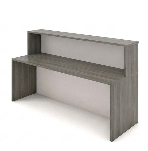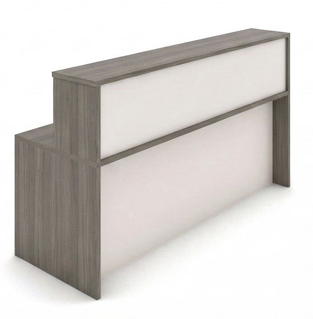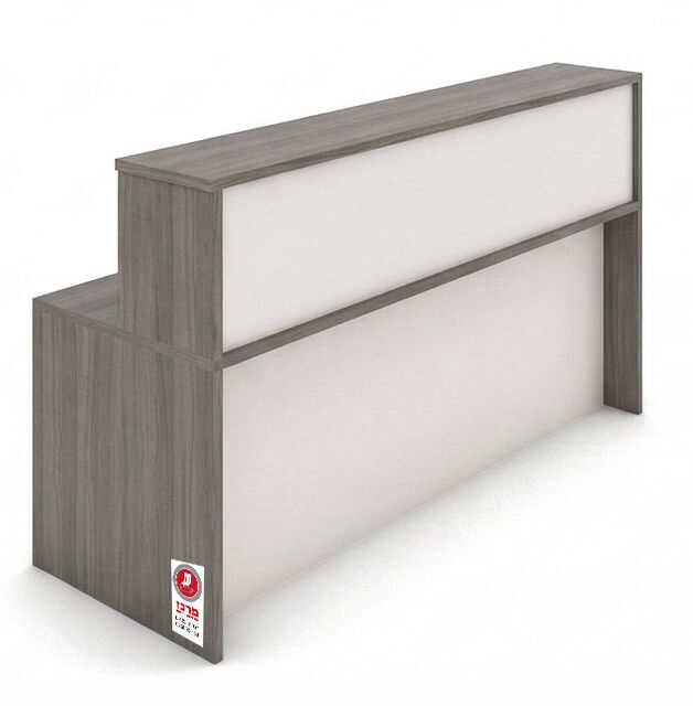 דלפק שירות מוארך בעיצוב מודרני במגוון גווני מלמין, הכולל דופן קדמית מעוצבת ומשטח עבודה פנימי רחב ונוח. פתרון אידיאלי ליצירת עמדת קבלה ייצוגית ומרשימה המותאמת לחללים מסחריים, קניונים ומשרדים הנותנים שירות קהל.