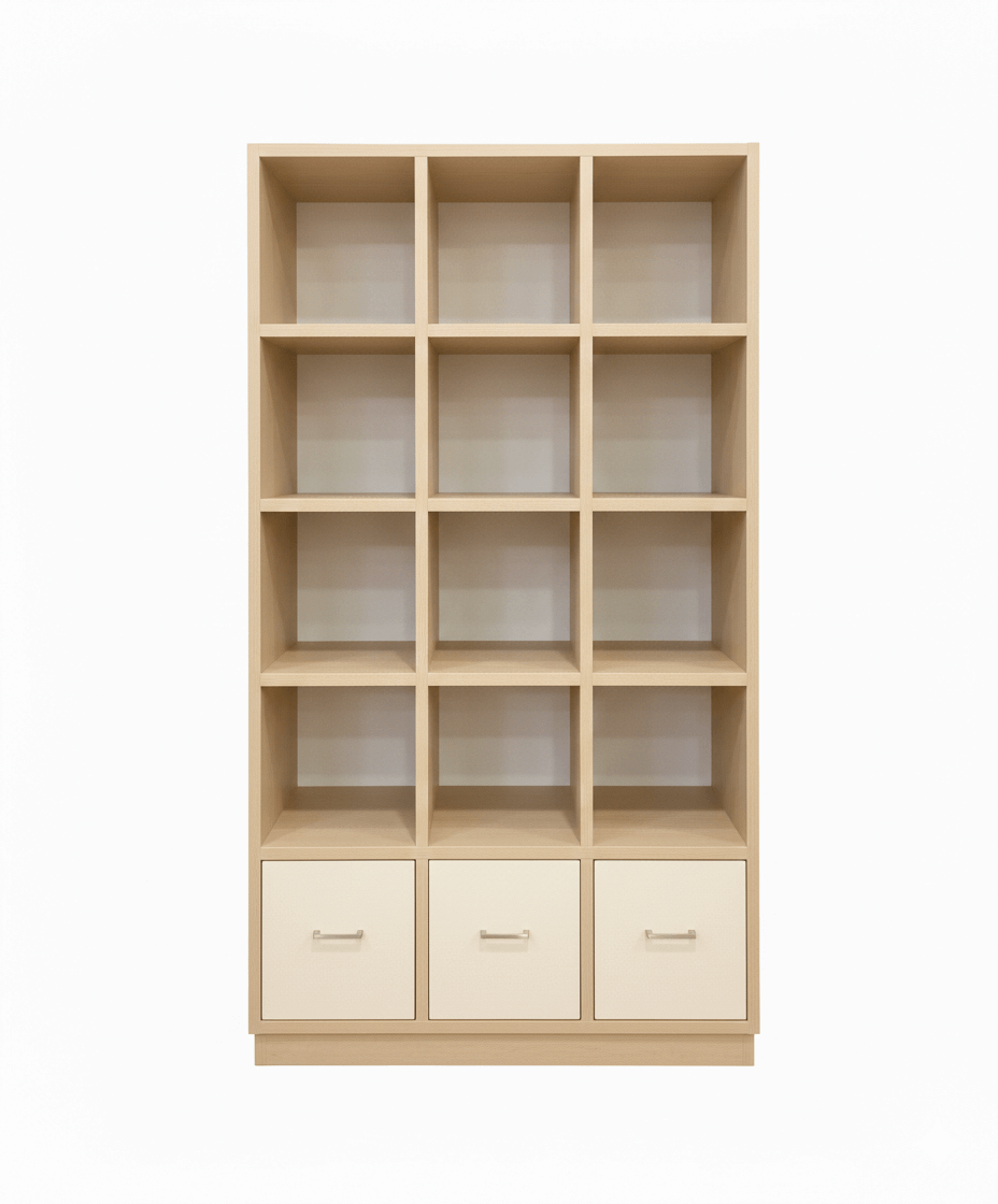 השילוב המנצח בין תצוגה פתוחה לאחסון סגור. הכוורת מגירות מעוצבת בקווים נקיים וסימטריים, ומעניקה פתרון חכם ומעוצב לכל חלל בבית – מהסלון ועד חדר העבודה.