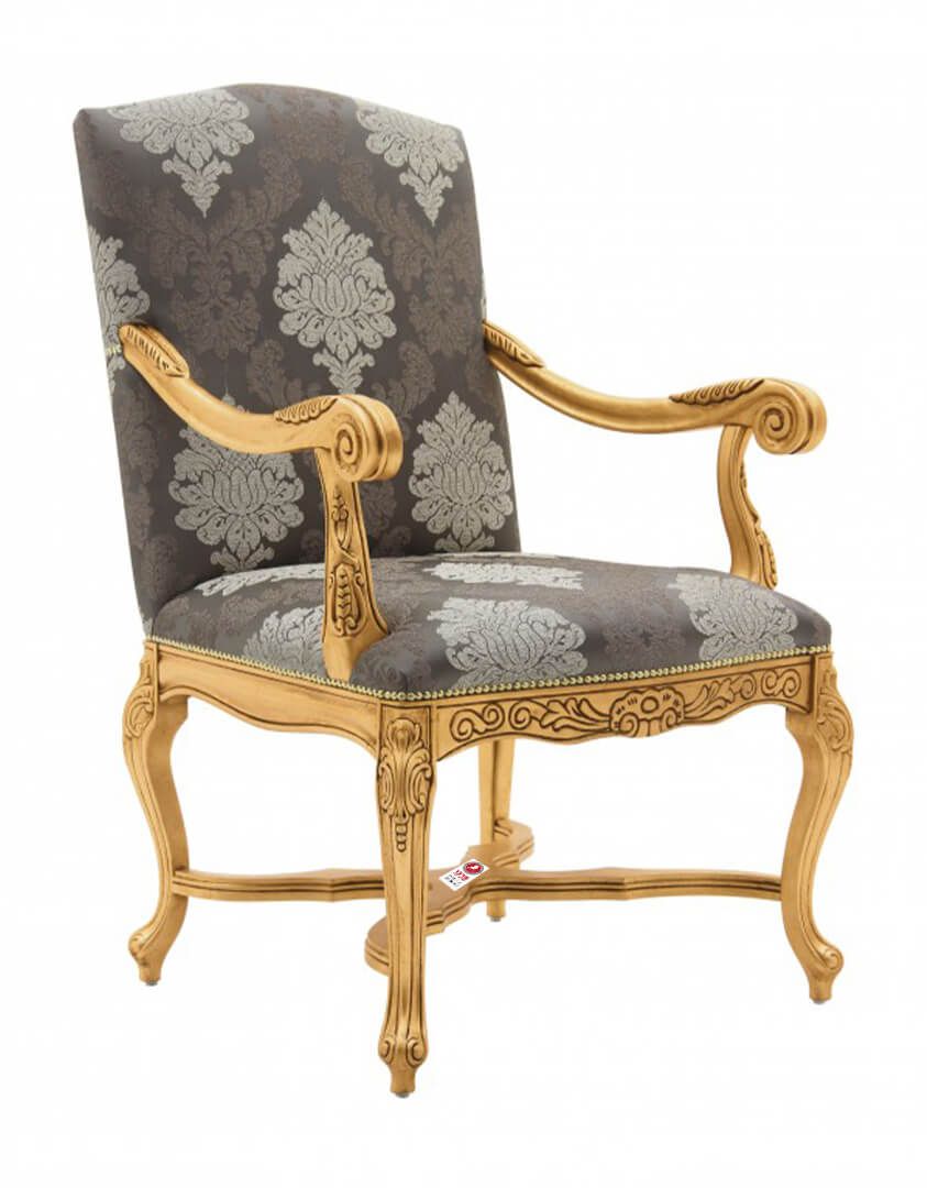 כיסא מרשים במיוחד בעיצוב אירופאי קלאסי, עם שלדת עץ מגולפת בעבודת יד – בגימור לפי בחירת הלקוח. הריפוד בדגם מהודר ואצילי, לבחירה ממגוון רחב של בדים ודוגמאות בהתאמה אישית.