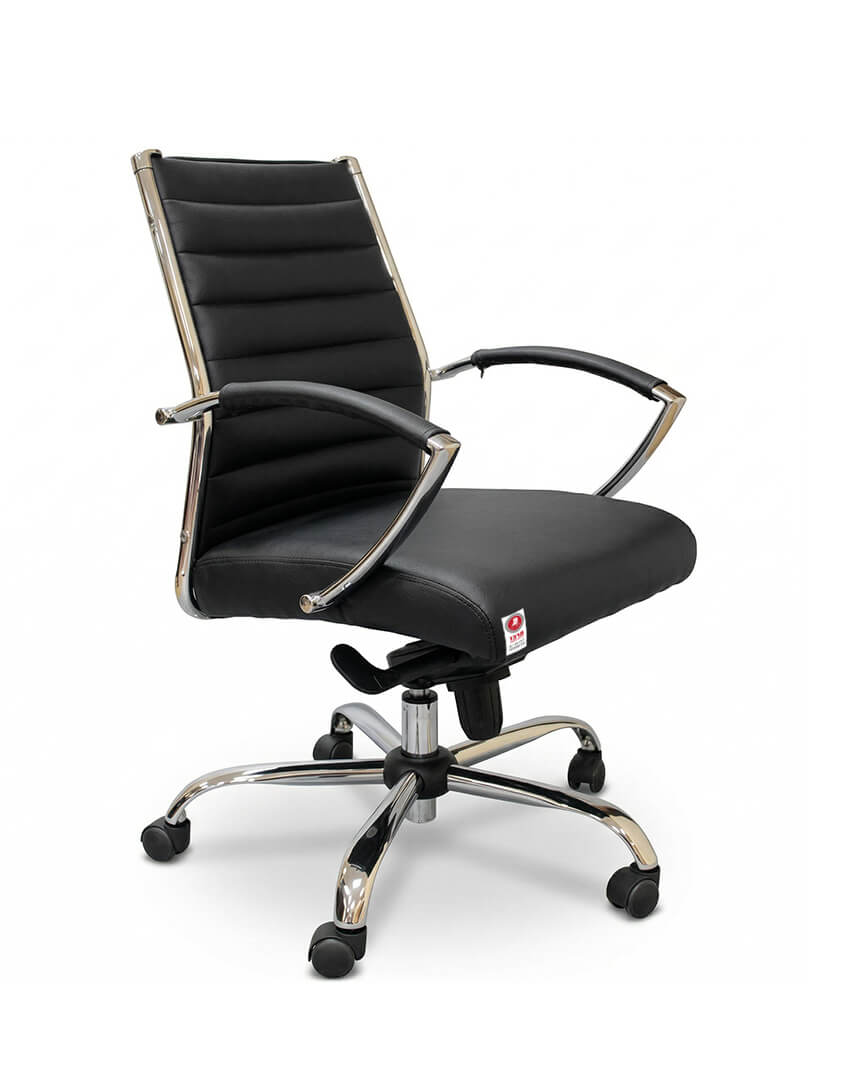 כסא מנהלים דגם בנק נמוך מעוצב בסגנון איקוני וקלאסי עם רצועות אופקיות מרופדות לאורך הגב והמושב המעניקות מראה יוקרתי ומוקפד לכל משרד הכסא מציע נוחות גבוהה ויציבות הודות לשילוב בין שלדת כרום חזקה ומבריקה לבסיס גלגלים עמיד לתנועה חלקה דגם בנק נמוך זמין בצבע שחור קלאסי או שמנת אלגנטית ומבטיח לשדרג את עמדת העבודה שלך במראה מכובד ומרשים