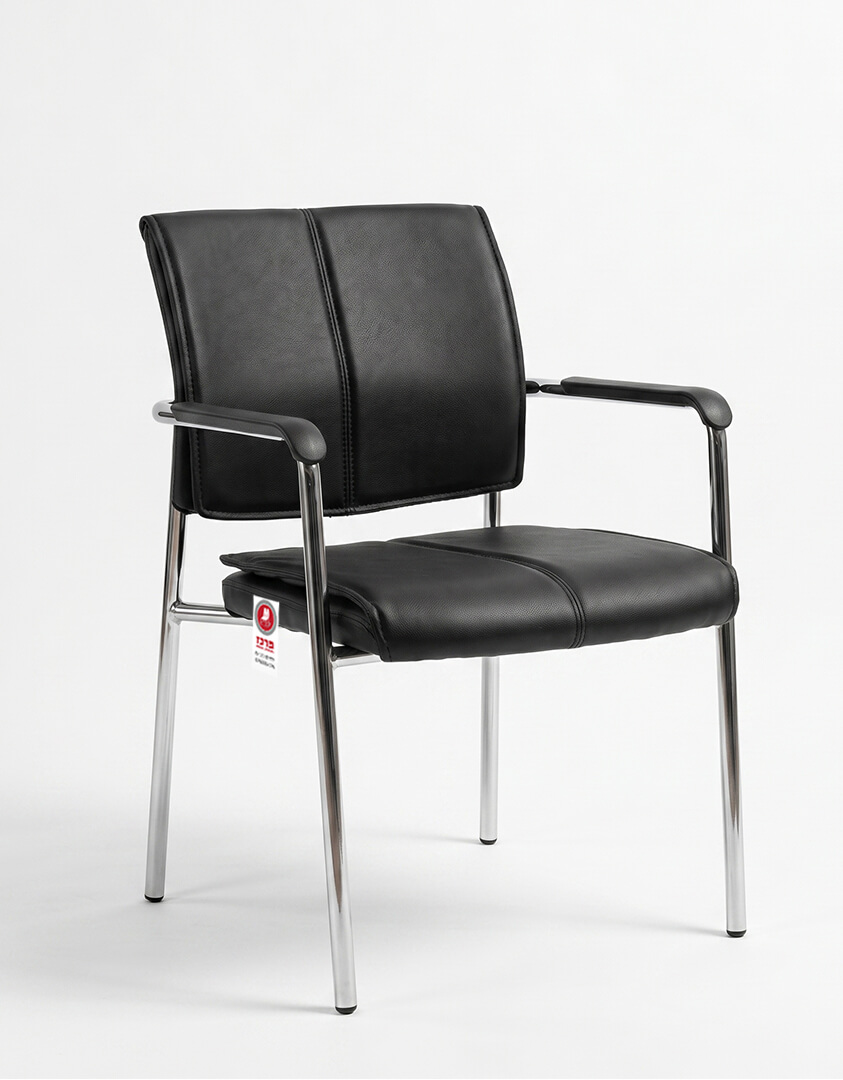 כיסא משרד אלגנטי ונוח עם עיצוב מודרני. עשוי מריפוד דמוי עור איכותי בצבע שחור, בשילוב רגלי מתכת למראה יוקרתי. הכיסא כולל משענות יד לתמיכה מרבית ונוחות בישיבה ממושכת. מתאים למשרדים, חדרי ישיבות, אזורי המתנה ולשימוש ביתי. הבחירה המושלמת לעיצוב פונקציונלי ומרשים.