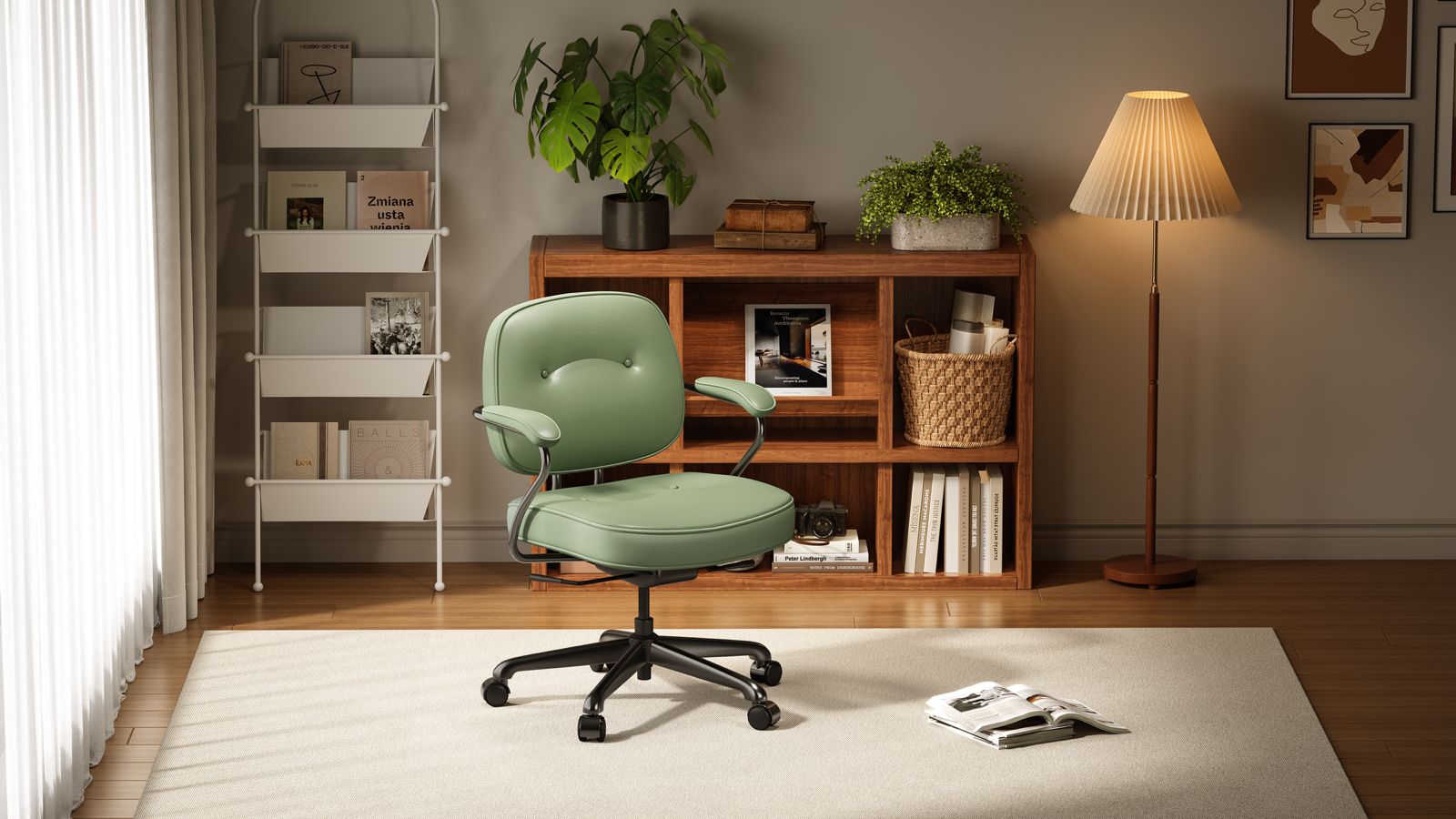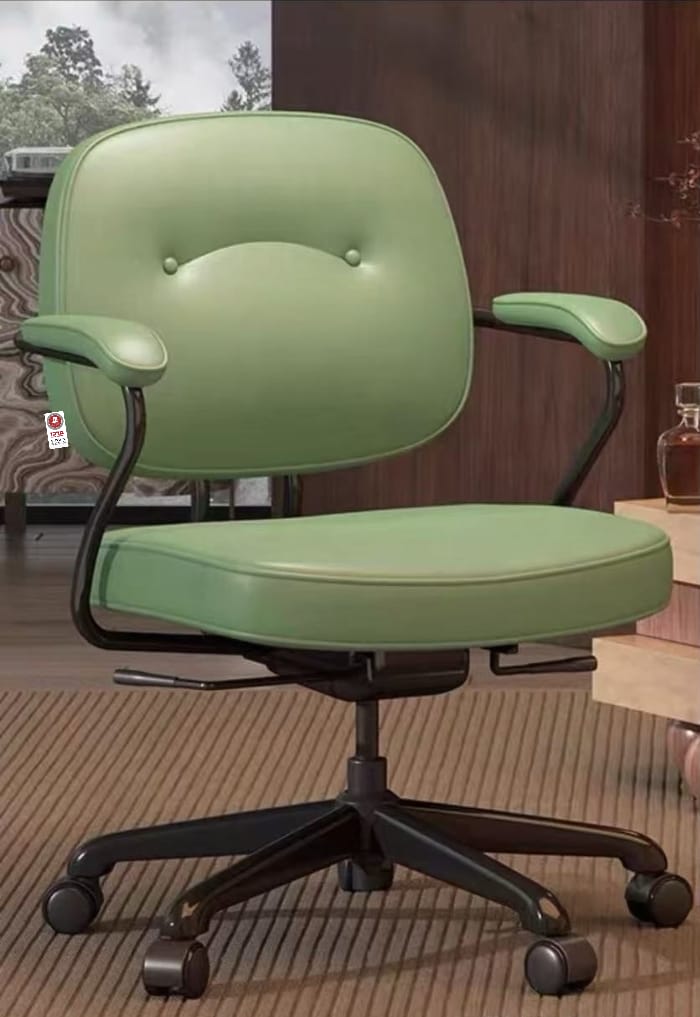 כיסא משרדי איכותי שמשלב נוחות גבוהה עם מראה אלגנטי ומתוחכם. מרופד בדמוי עור בגוון חום עשיר, עם קווים מעוגלים וכפתורי תפירה קלאסיים להשלמת מראה יוקרתי. כולל משענות יד מרופדות, מנגנון סיבוב וגלגלים לניוד קל ונוח.