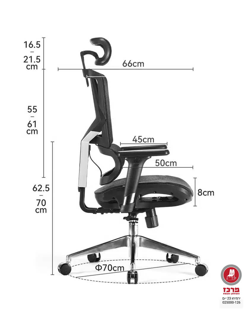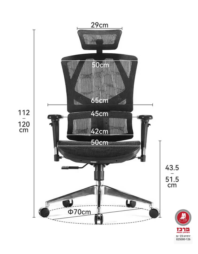כיסא מנהלים מתקדם המשלב עיצוב מודרני עם נוחות ללא פשרות. עשוי רשת איכותית במיוחד, דוחה נוזלים וזיעה, המבטיחה ישיבה נעימה ואוורירית לאורך זמן. הכיסא כולל מערכת תמיכה ייחודית לגב התחתון ומנגנון מתקדם להתאמת התנגדות משענת הגב, לצד מנגנון נדנוד נוח. משענת היד המתכווננת בשלושה מימדים ומשענת הראש המותאמת מספקות חוויית ישיבה מותאמת אישית. גימורי האלומיניום היוקרתיים מוסיפים לו מראה אלגנטי ויוקרתי שמתאים לכל חלל משרדי. עם בוכנת גז עמידה בתקן SGS TEST ומושב אורטופדי נושם, הכיסא מתאים במיוחד לשימוש ממושך ומומלץ למשתמשים בגובה של עד 170 ס"מ.