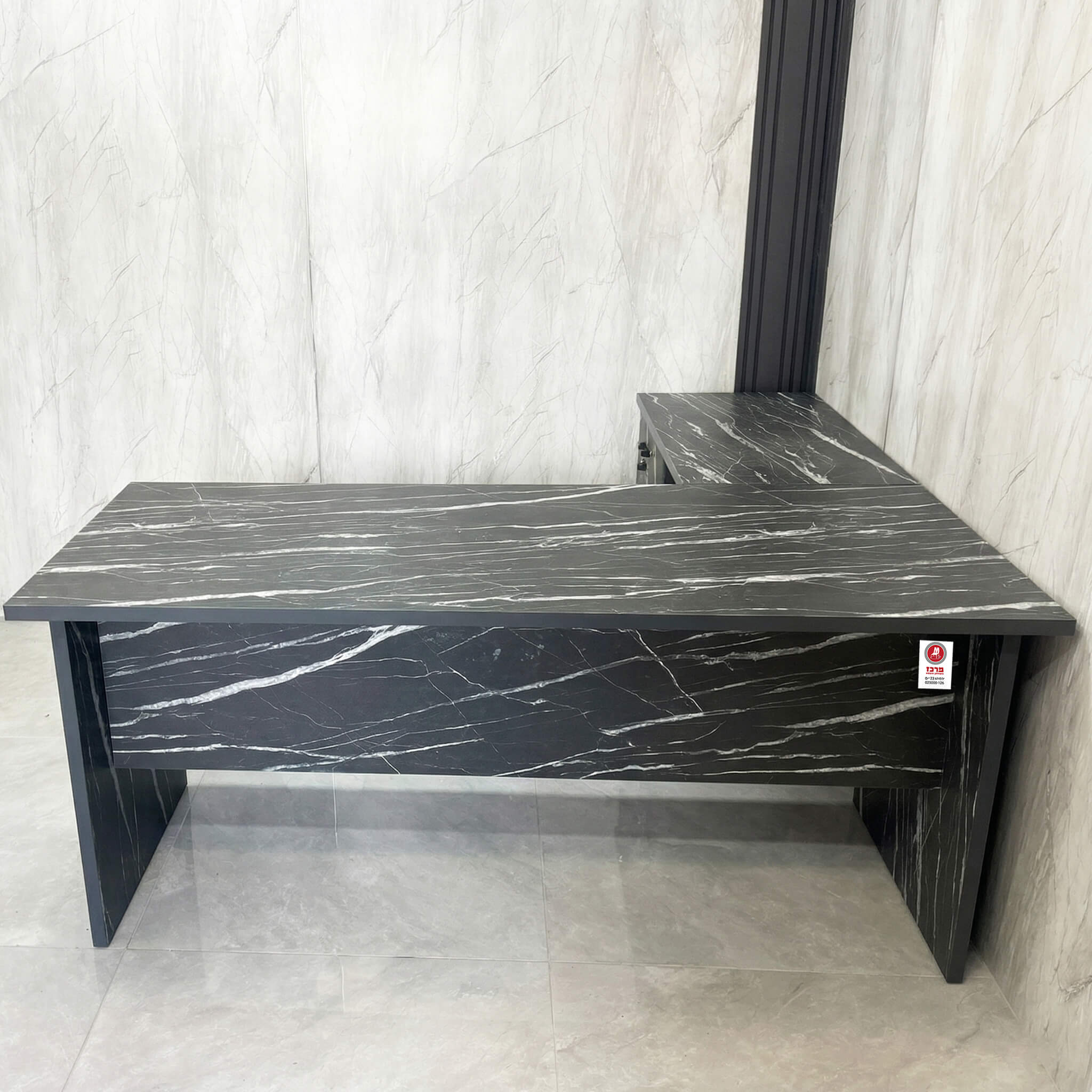 שולחן עבודה עם שלוחה בעיצוב קלאסי במבחר גדלים וצבעים. מתאים לכל חלל ומשרד. אפשרי גם לחדר עבודה ביתי משטח עבודה רחב ונוח בתוספת יחידת מגירות מובנית לאחסון מסודר של מסמכים וחפצים אישיים. העיצוב הפינתי מנצל בצורה חכמה את חלל החדר ומעניק סביבת עבודה נוחה ניתן לבחור בכל צבע של מלמין וכן בכל גודל של השולחן ושל השלוחה תוספת עד 30 ס"מ 300 ש"ח