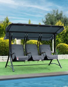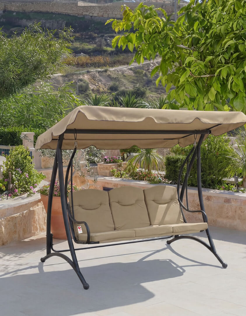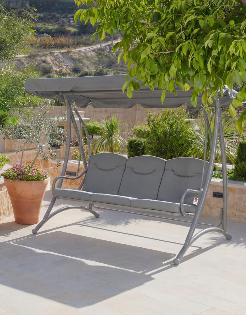 נדנדת ירח המעוצבת עם שלושה מושבים רחבים ונוחים היא הפתרון האידיאלי לשדרוג הגינה או המרפסת וליצירת פינת מרגוע מושלמת לימי הקיץ הנעימים היא כוללת שלדת מתכת עם גגון הצללה מתכוונן המעניק הגנה מלאה מהשמש ומאפשר לכם ליהנות מבילוי שליו תחת כיפת השמיים הנדנדה זמינה בשני שילובים אלגנטיים של שלד אפור עם ריפוד אפור או שלד שחור עם ריפוד בז' ומעניקה מראה מעוצב ויוקרתי לכל חלל חיצוני